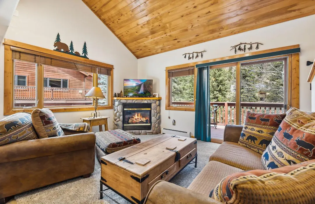 Furnished with a sofa set, the interior features a stone fireplace. Within the in-room media amenities, there is high-speed internet. Guests staying in this property will enjoy the convenience of a hair dryer in the bathroom. A walk-in shower can also be found.